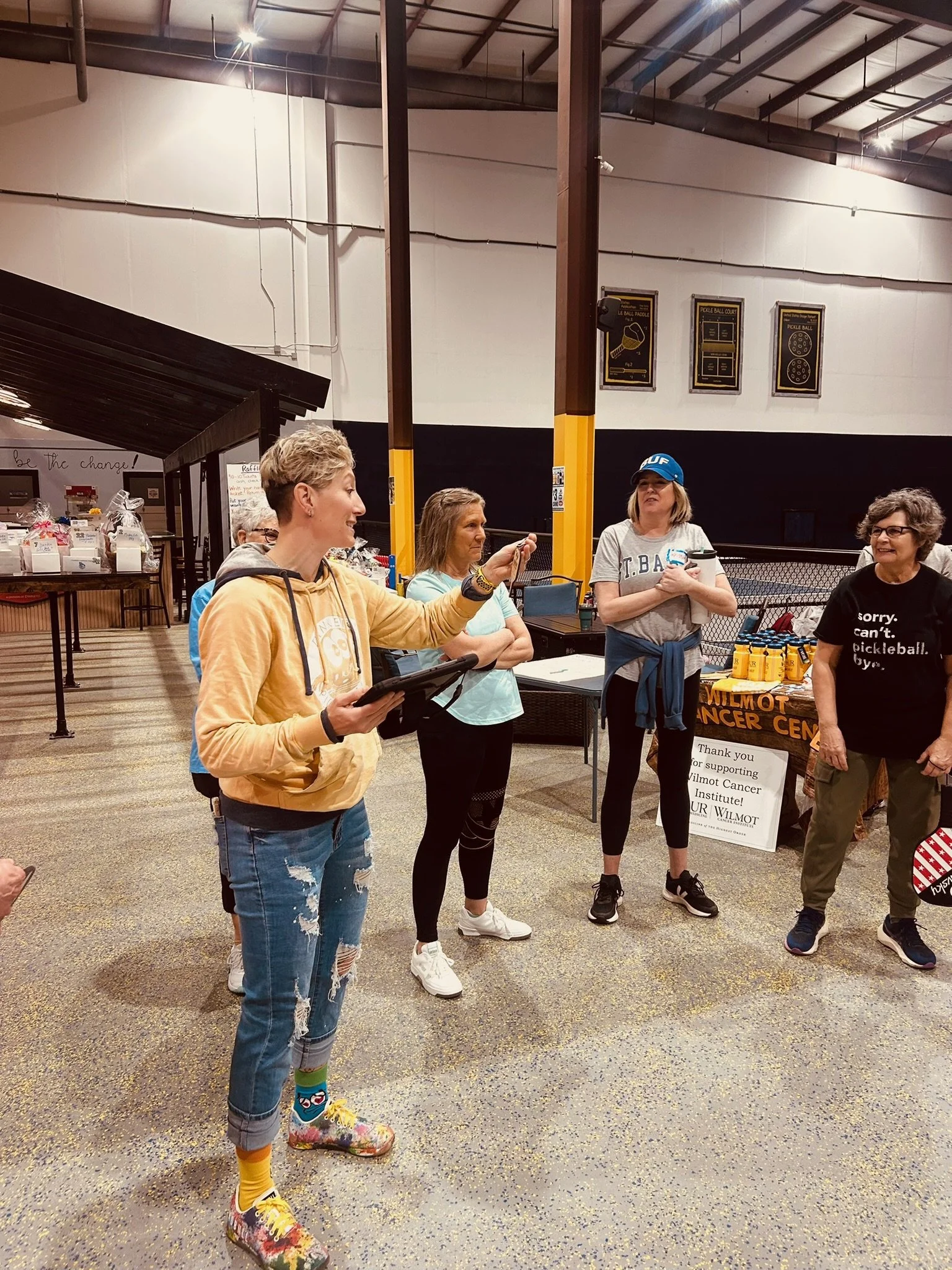 On Saturday May 3rd Team Marty pickleball players gathered at Dinkers Pickleball Club in East Rochester to play pickleball, eat great food, win exceptional raffle prizes and have a day of fun. We started with a coed scramble and then moved on to men’s and women’s beginner and intermediate levels. Throughout the day food was donated by Salvatore’s Pizzeria, Dinosaur BBQ, Mark’s Pizzeria, Leo’s Bakery and Kitty’s Kakes. 69 businesses participated by monetary donations, gift cards, raffle prizes, the gift of time. Personal donations generously added to our totals. Old friends made new memories, new friends made new connections and best of all we raised $8900.00! Words cannot express our gratitude for everyone who supported our cause. I am exceptionally thankful to the committee who pulled it all together and to Dinkers staff for your work leading up to and especially on FUNdraiser day to make it all run so smoothly!